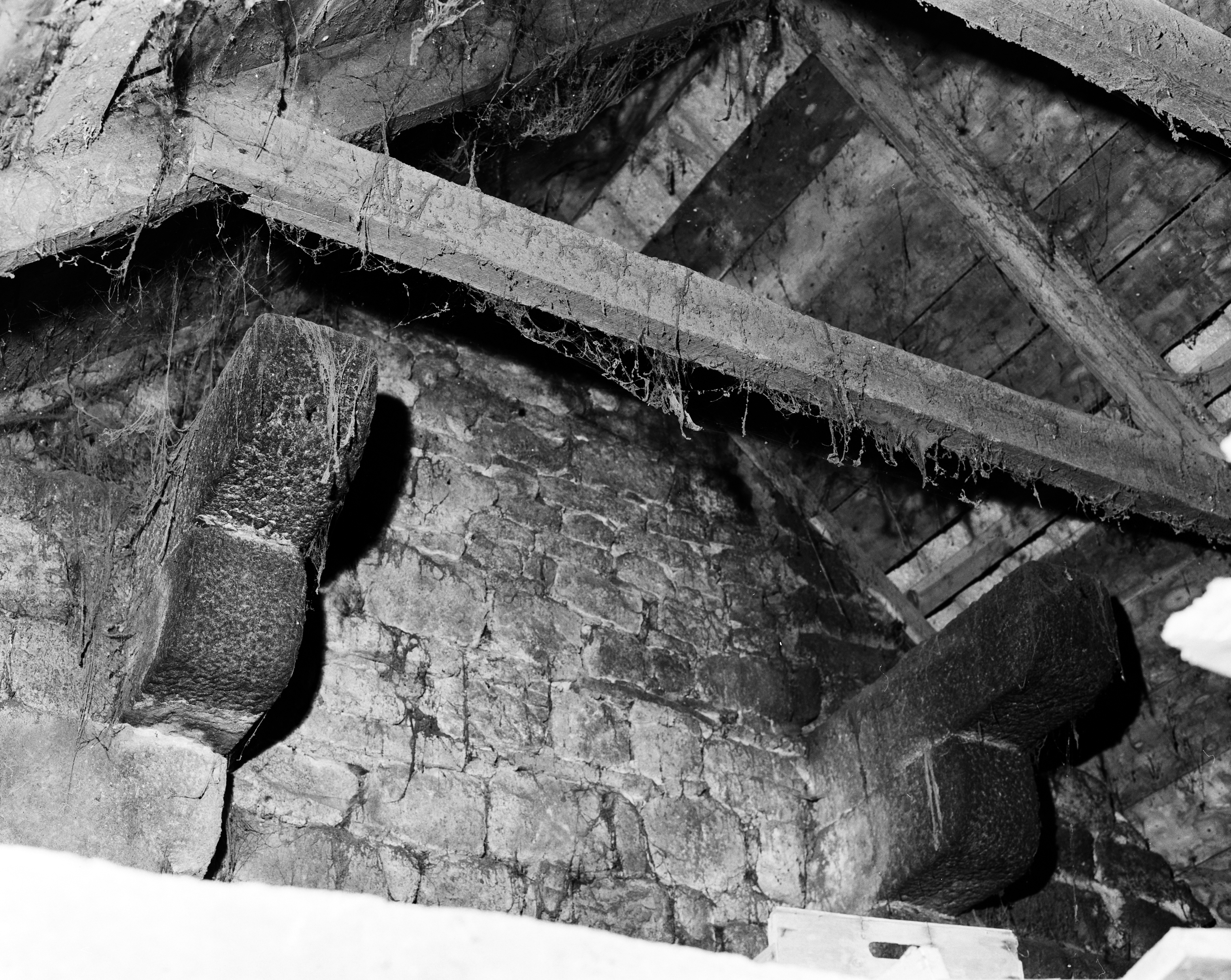 Ferme, mur-pignon ouest de l'étable : vestiges de la cheminée (état en 1986)Immatriculation