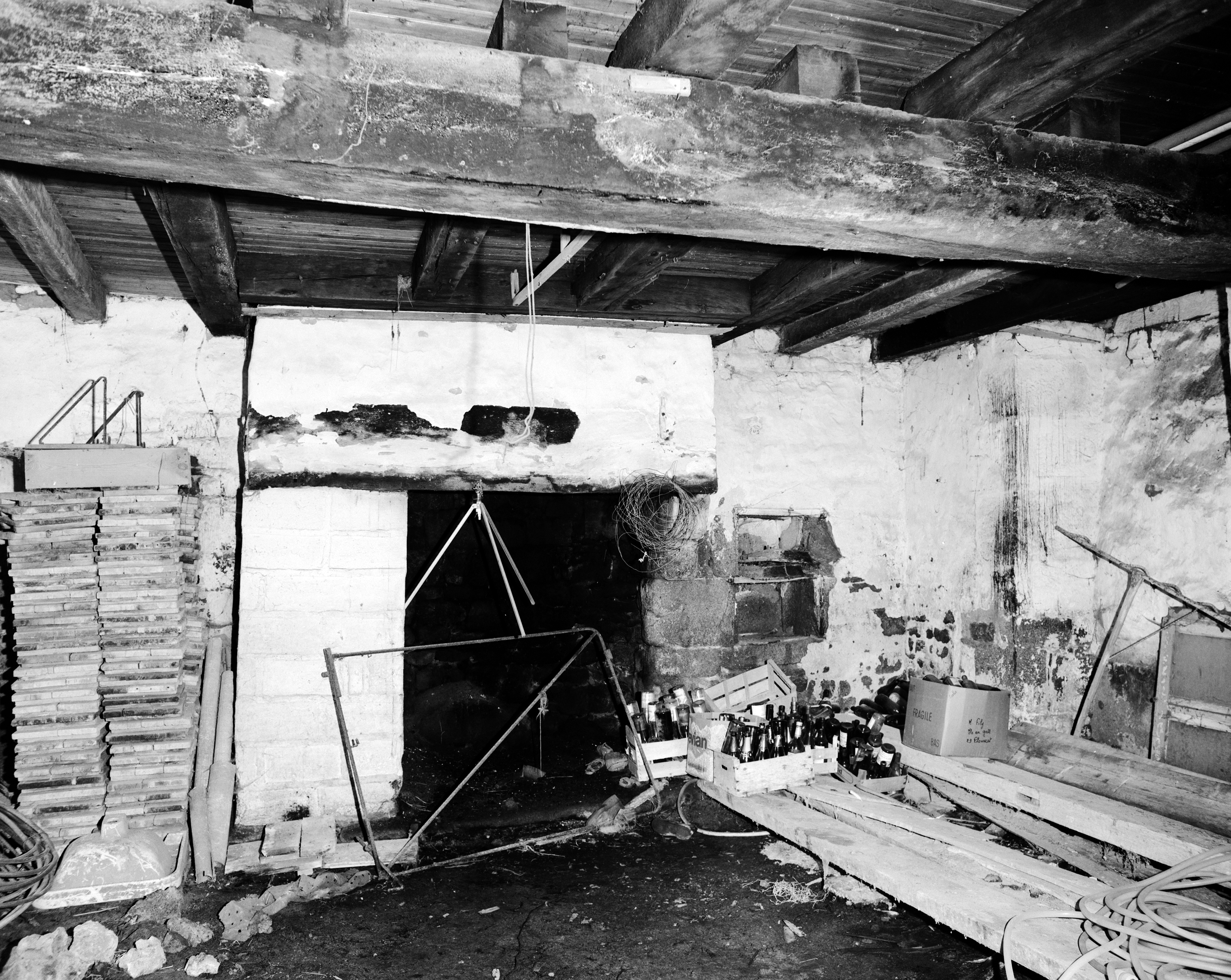 Manoir, rez-de-chaussée, pièce ouest : vue générale vers la cheminée (état en 1986)Immatriculation