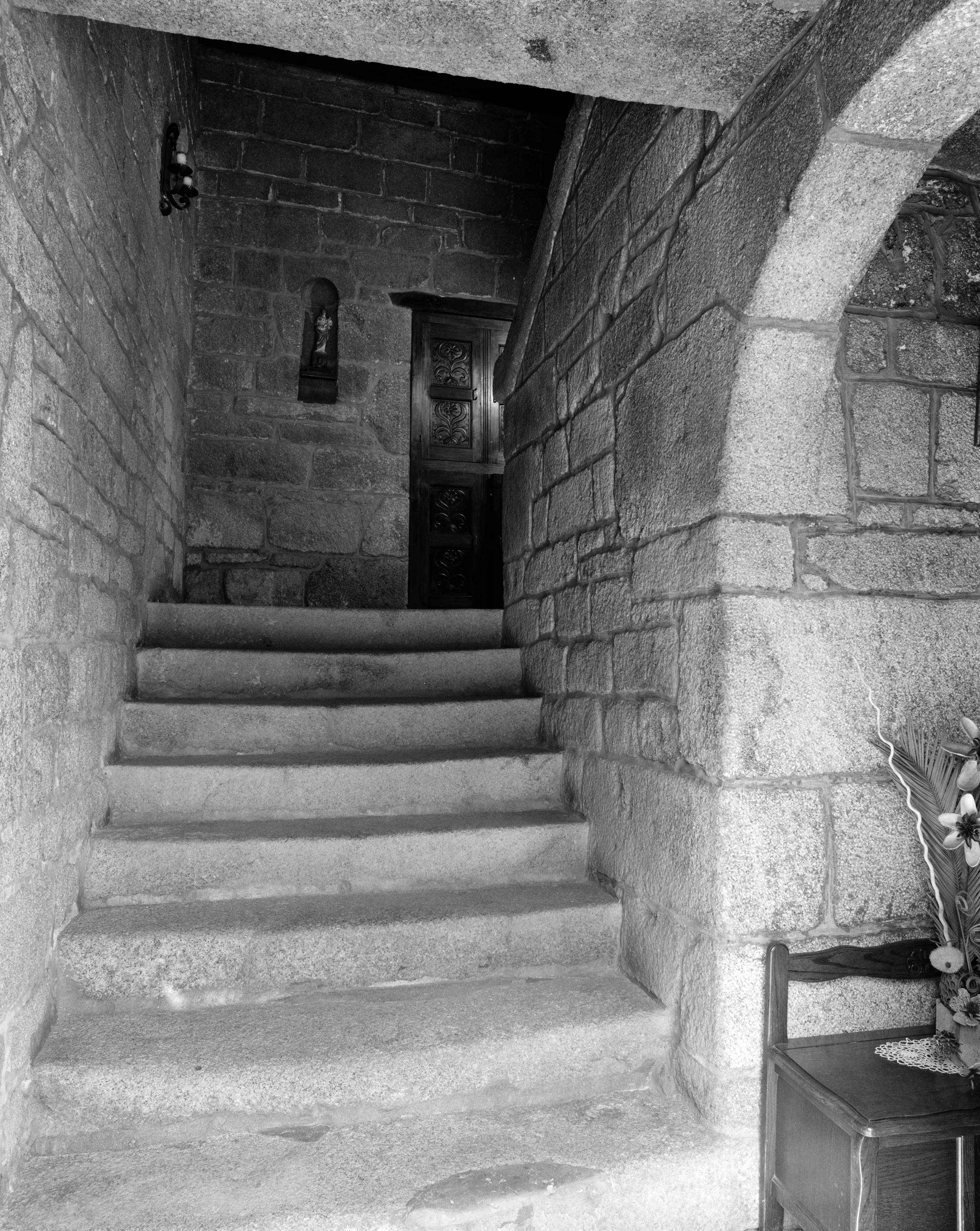 Manoir, logis : 1ère volée de l'escalier (état en 1986)Immatriculation