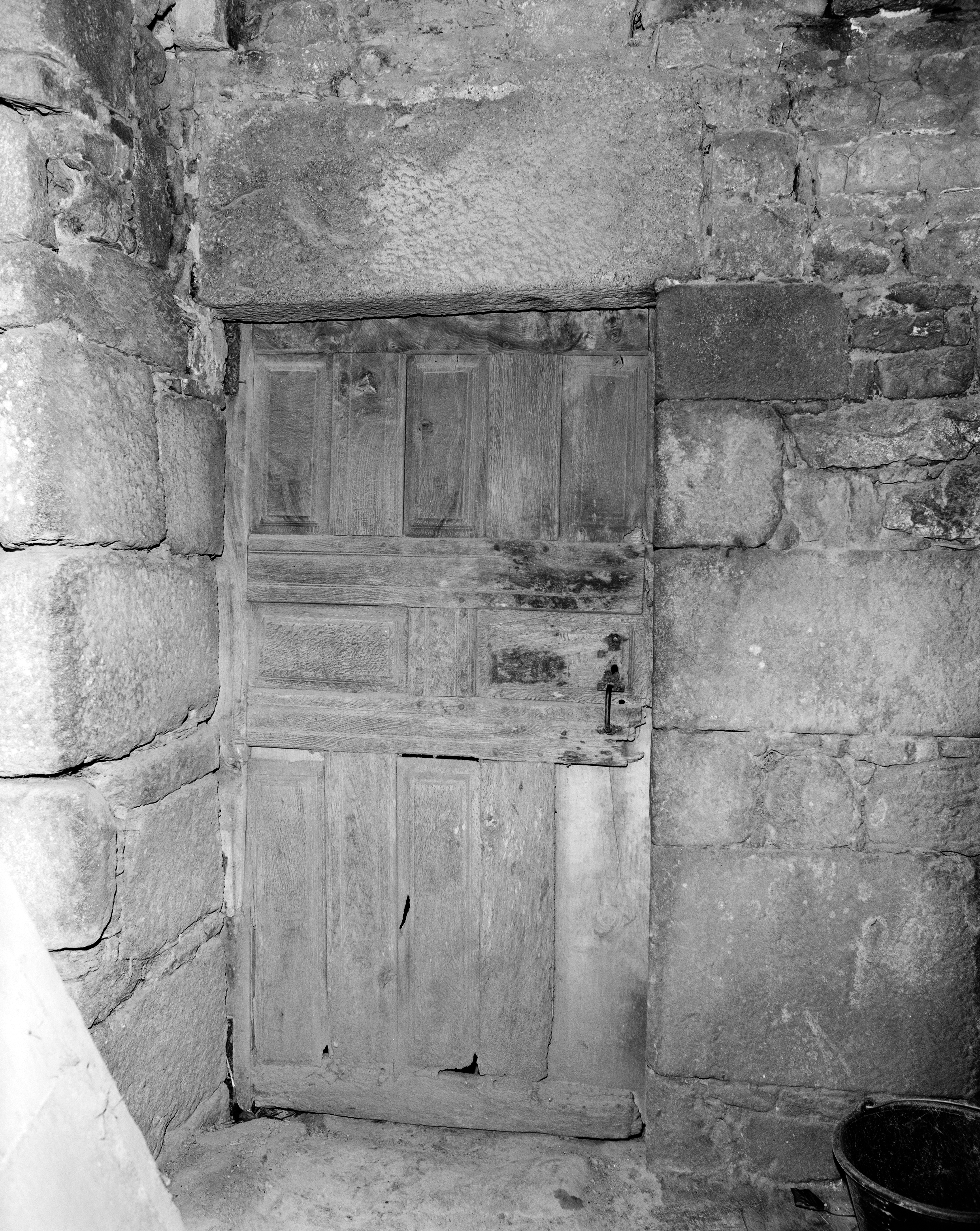 Manoir, rez-de-chaussée : vantail de la porte donnant sur la salle (état en 1986)Immatriculation