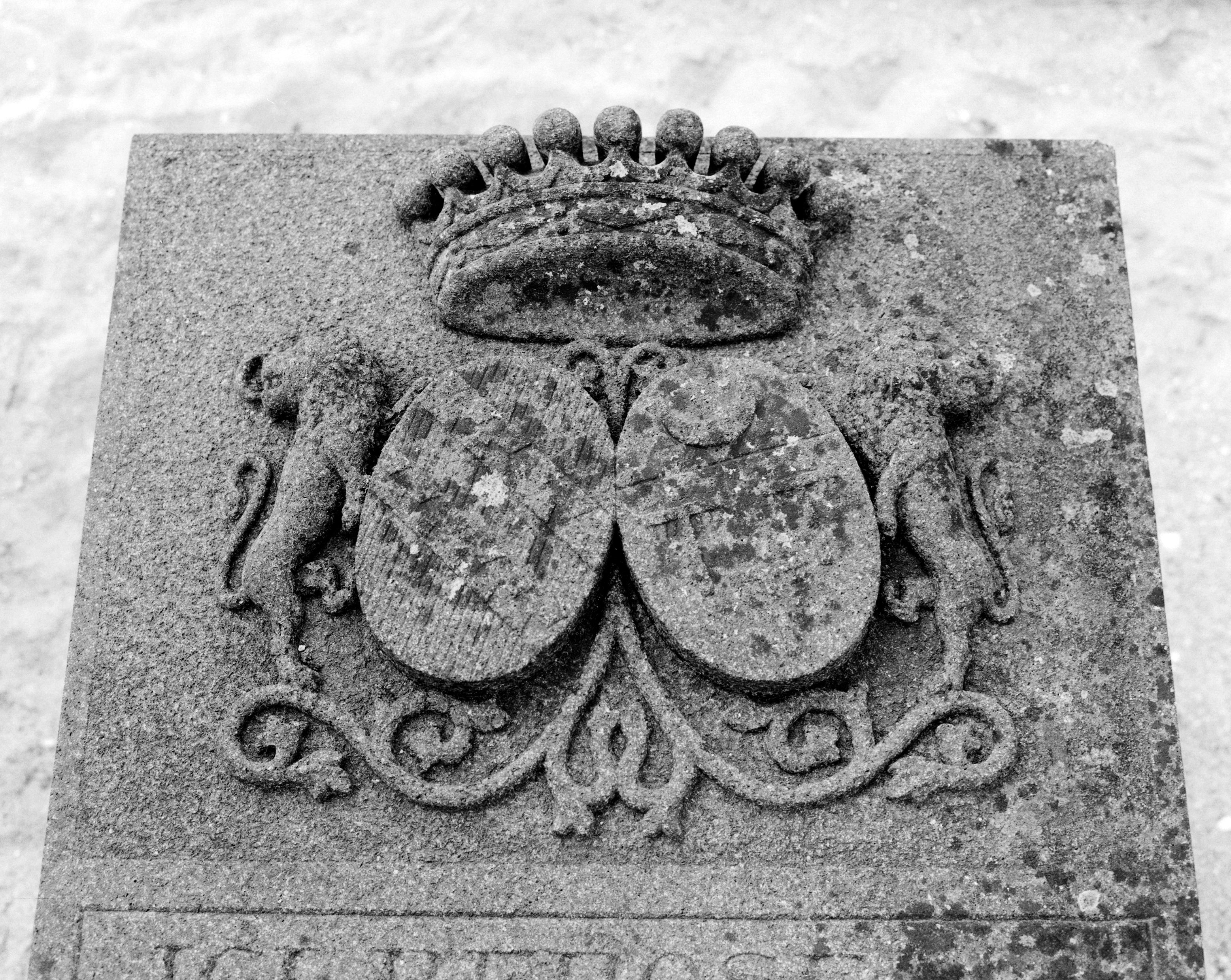 Tombeau : armes d'alliance de Casimir-Frédéric du Vergier de Kerhorlay et de Marie Elisabeth de BrunvilleImmatriculation