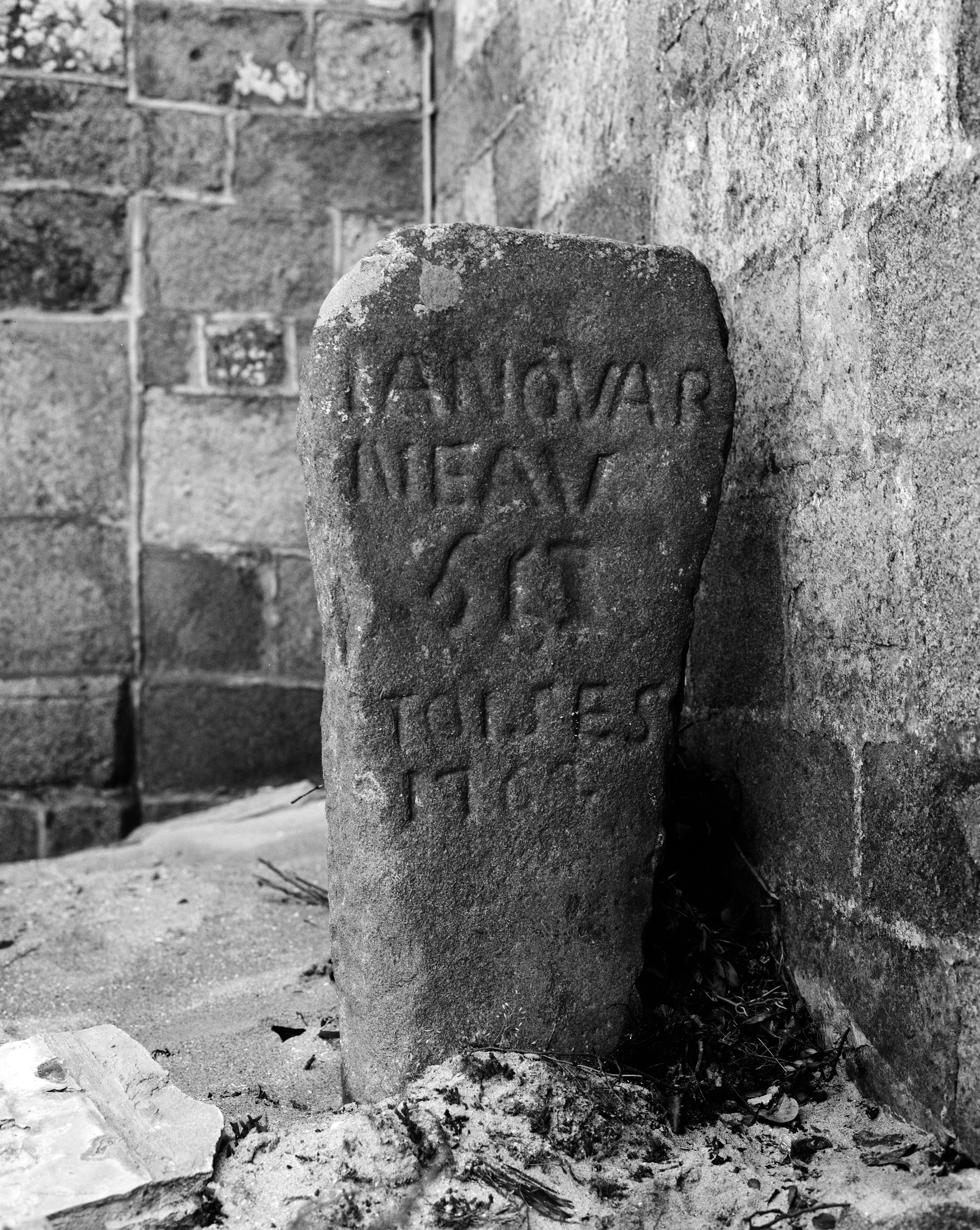 Borne de corvée : face portant le nom de Lanhouarneau (état en 1986)Immatriculation