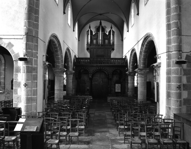 Ile de Batz, église paroissiale Notre-Dame : intérieur, vue axiale prise vers l'ouest, avec tribune d'orgue, état en 1986Immatriculation