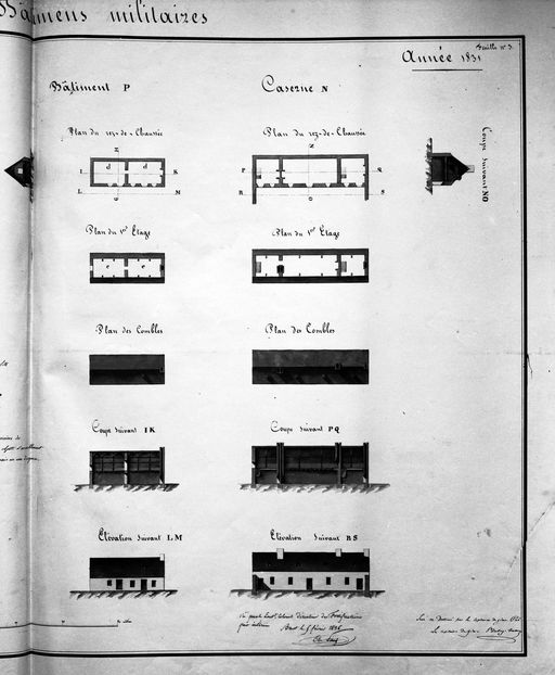 Atlas des bâtiments militaires des places de France : établissements de la presqu'île de Quélern : bâtiment p, caserne n, 1836Immatriculation