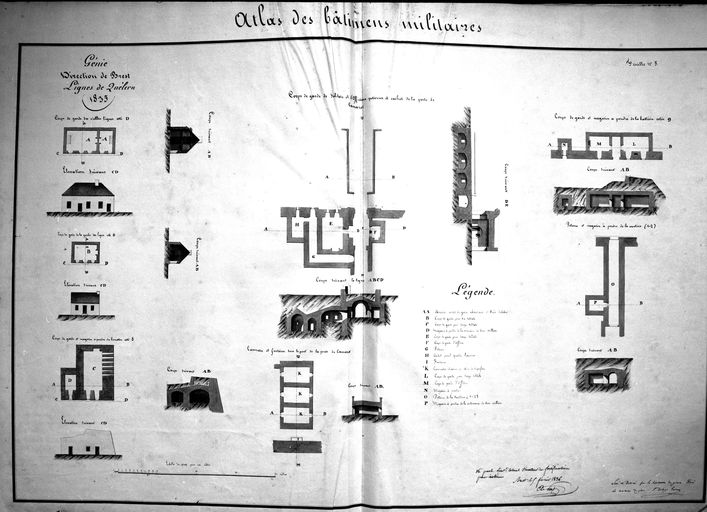 Atlas des bâtiments militaires des places de France : établissements de la presqu'île de Quélern : corps de garde, corps de garde de la porte de Camaret, 1835Immatriculation