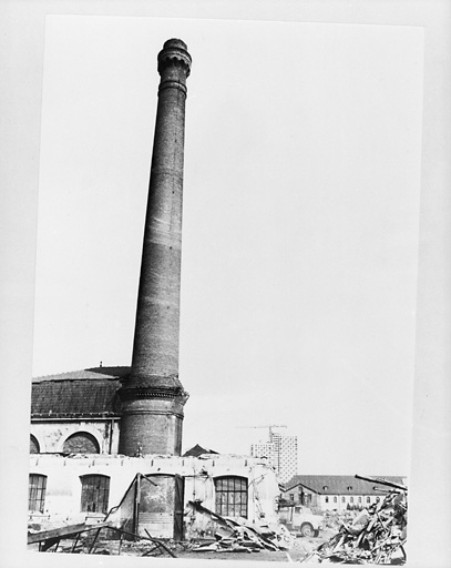 Démolition de la cheminée (repro. Cl. Ouest-France)Immatriculation