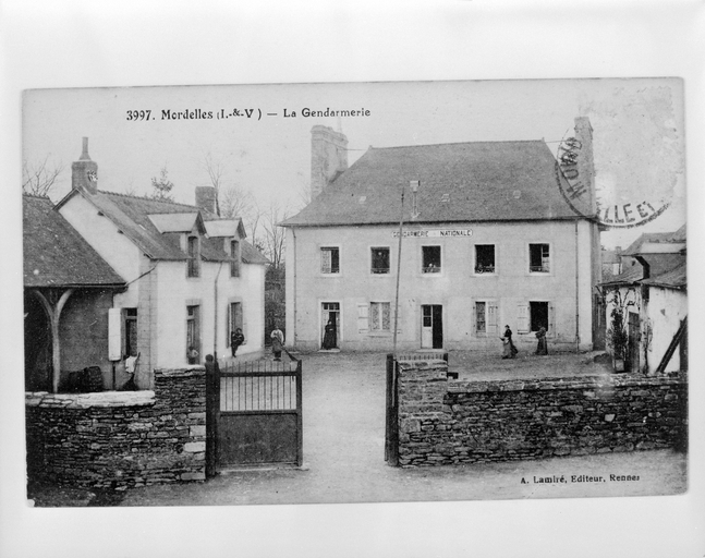 3997 - Mordelles (I.-et-V.) - La gendarmerie, carte postale ancienne.Immatriculation