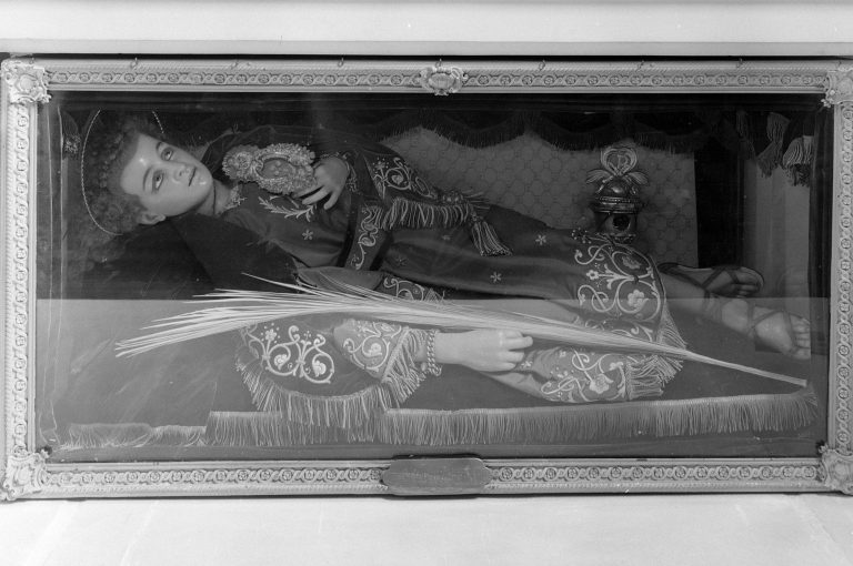 Chasse reliquaire, vue générale (collection privée).Immatriculation