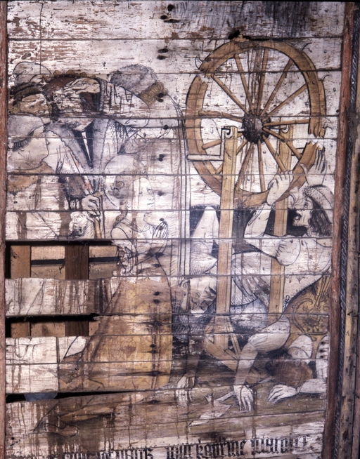 Peintures (8) : vie de sainte Catherine, anges, saint Pierre, saint Jean, chapelle Notre-Dame-de-Carmes (Neulliac),