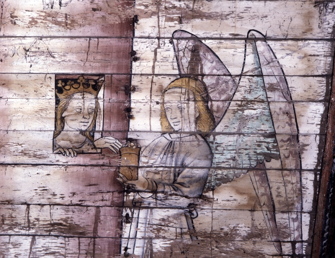 Peintures (8) : vie de sainte Catherine, anges, saint Pierre, saint Jean, chapelle Notre-Dame-de-Carmes (Neulliac),
