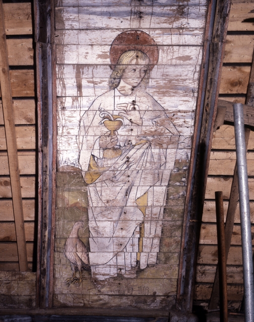 Peintures (8) : vie de sainte Catherine, anges, saint Pierre, saint Jean, chapelle Notre-Dame-de-Carmes (Neulliac),