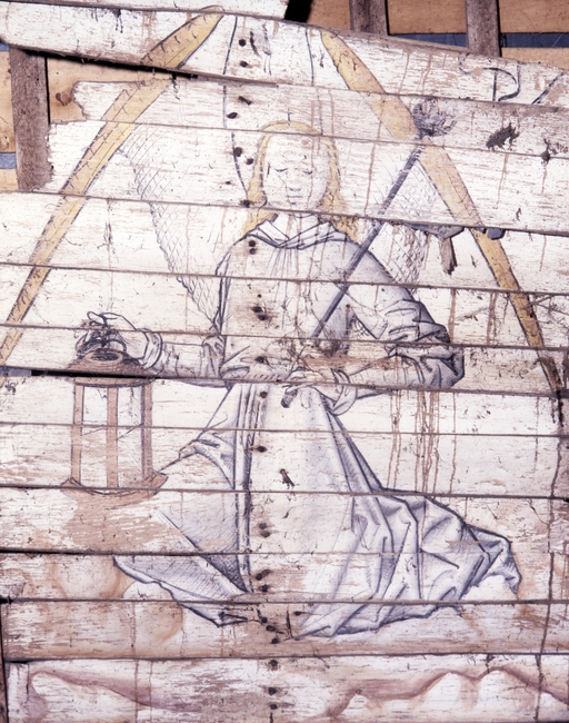 Peintures (8) : vie de sainte Catherine, anges, saint Pierre, saint Jean, chapelle Notre-Dame-de-Carmes (Neulliac),