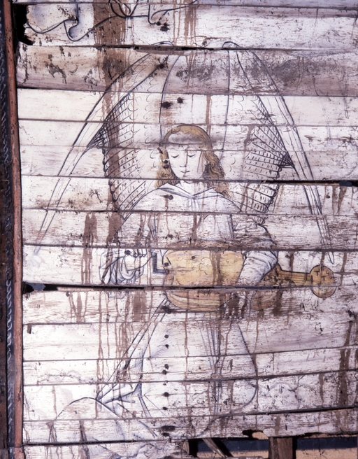 Peintures (8) : vie de sainte Catherine, anges, saint Pierre, saint Jean, chapelle Notre-Dame-de-Carmes (Neulliac),