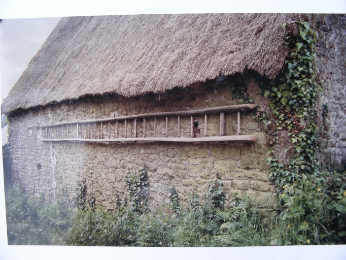 Elévation nord, échelle utilisée pour réparer la toiture de chaume, 1986 (cliché G. Danet)Immatriculation