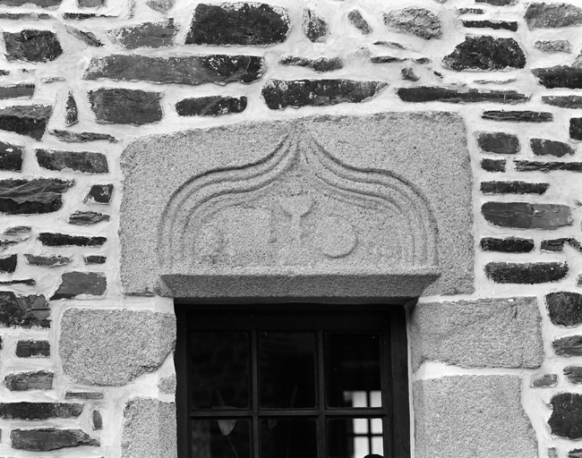 Maison (en village, rue des Cordiers) : détail linteau.Immatriculation