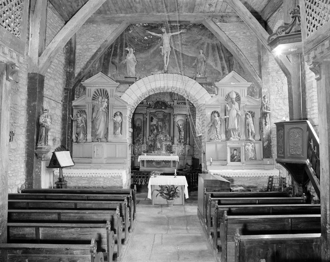 Vue intérieure, prise de la nef vers le choeur, enquête de 1986Immatriculation