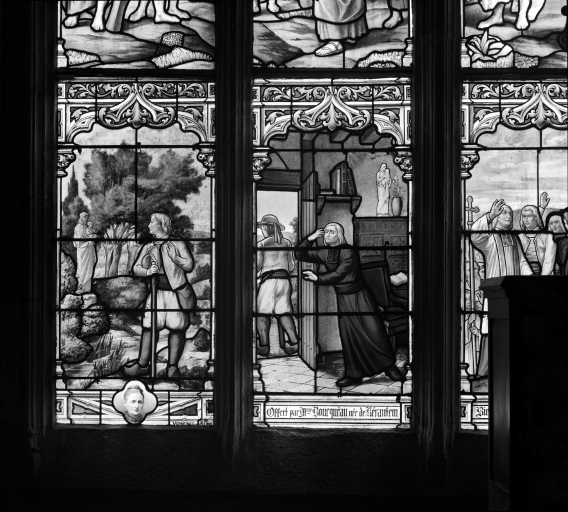 Verrière 0, panneaux a1 et a2 : Apparition de ND du Guiaudet, incrédulité et aveuglement du recteurImmatriculation