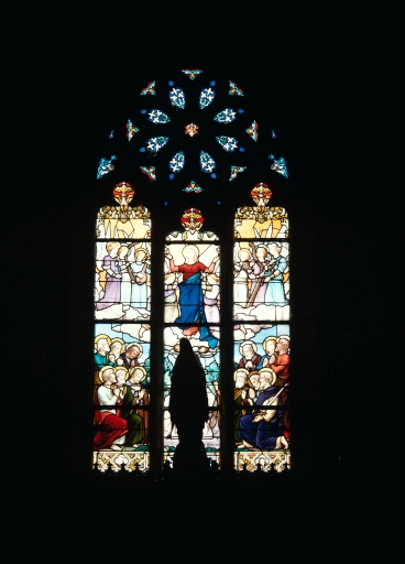 Ensemble de 14 verrières à personnages et d'un oculus,