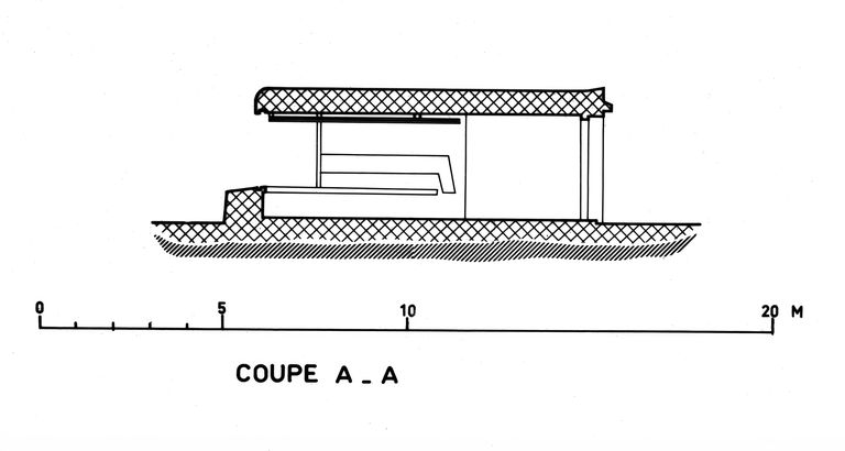 Coupe A-A du poste de combat et abri de jour de projecteurImmatriculation
