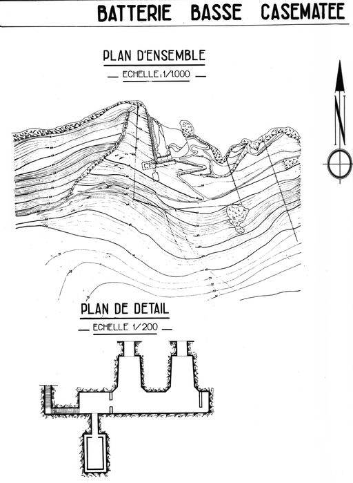 Batterie de rupture casematée (2 canons M de 32 cm modèle 1870-1884 sur affûts M modèle 1888) puis casemates (2 canons antichars de 5cm Kwk) (Cr 43), Pourjoint, au ras de l'eau (Roscanvel),
