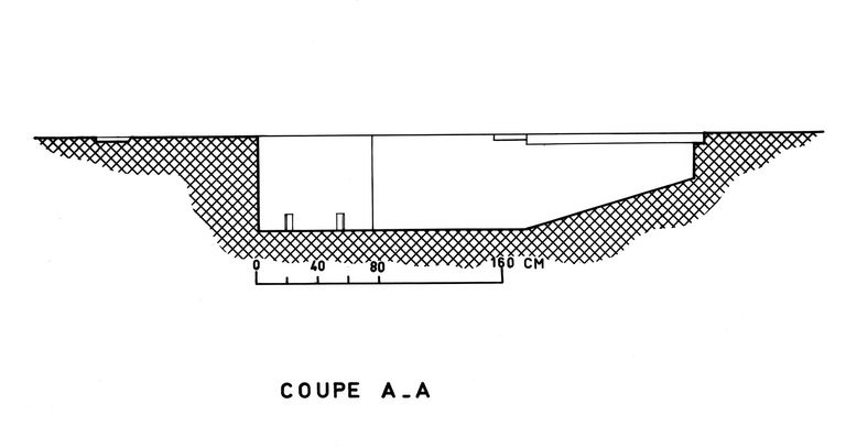 Poste de lancement des torpilles à l'ouest de la batterie Robert, coupe A-A (Delaunay)Immatriculation