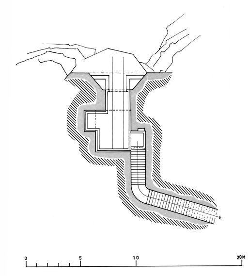 Plan de l'abri de combat et de jour sous roc pour projecteur de l'îlot des Capucins. Accès par un petit escalier voûtéImmatriculation