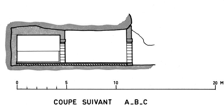 Coupe de la soute à munitions sous roc (bâtiment : D)Immatriculation