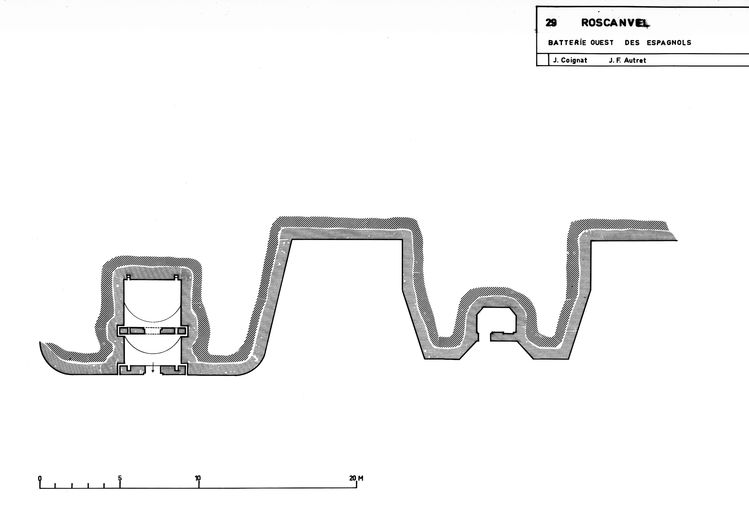 Batterie extérieure de droite (4 canons M de 24 cm modèle 1870 M sur affûts M modèle 1876-T-1883), orientée vers la rade, Pointe des Espagnols (Roscanvel),