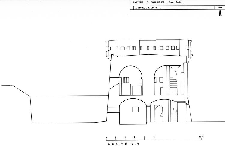 Coupe V-V de la tour-modèle n° 3 du Toulinguet (Autret)Immatriculation