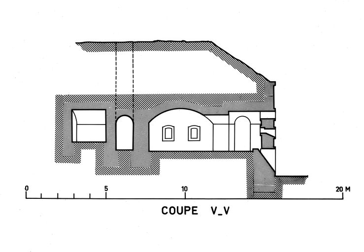 Plan et coupe V-V de la aileron Nord-est (A) (Lecoq)Immatriculation
