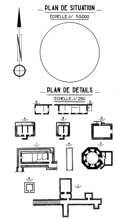 Plan de détail des ouvrages de la batterie de Trémet transformée en batterie de défense contre avions (DCA) en 1955Immatriculation