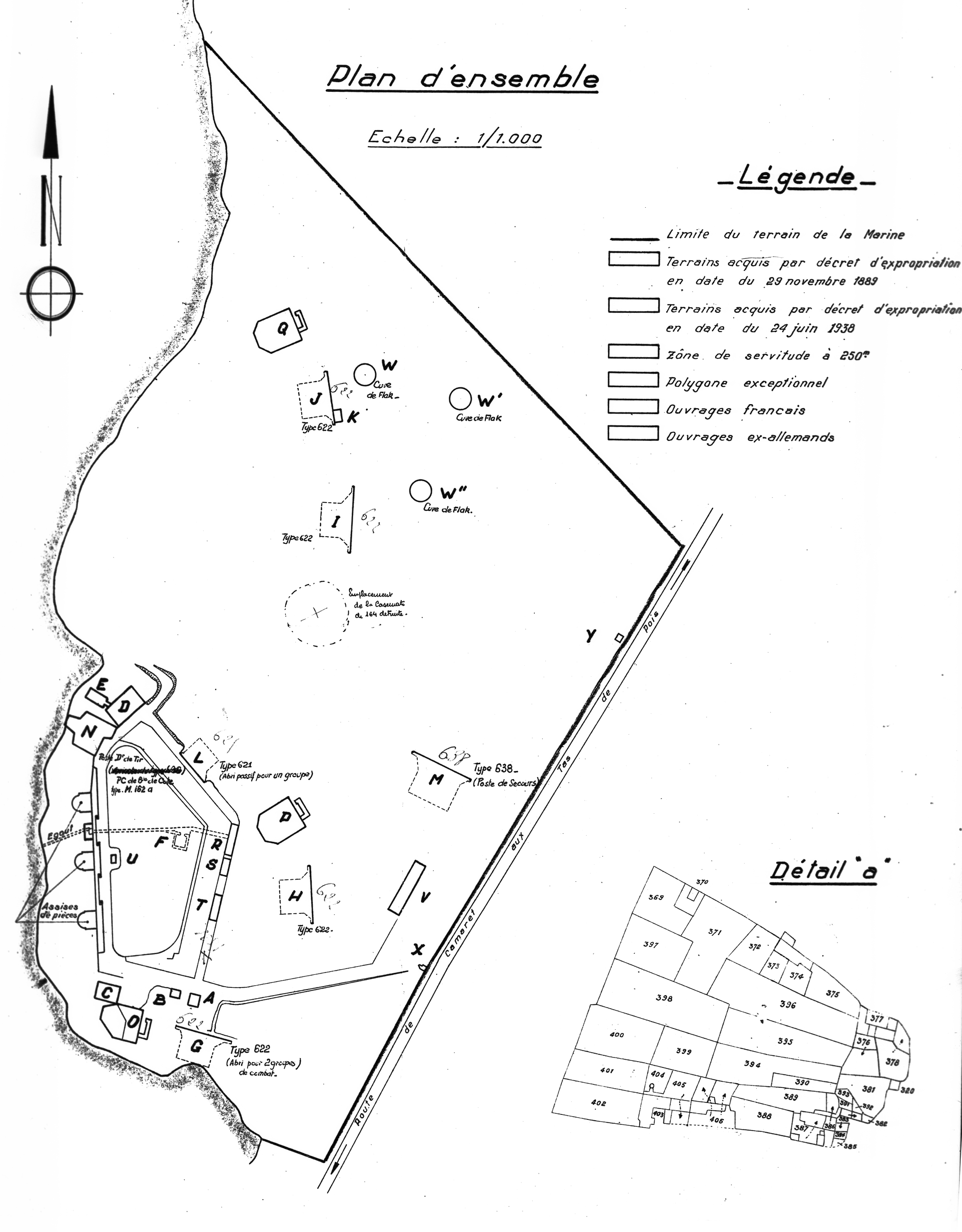 Plan d'ensemble de la batterie de Kerbonn (ouvrages français et ex-allemands)Immatriculation