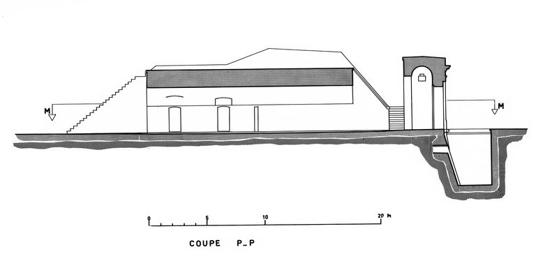 Réduit de Quélern, coupe P-P de la porte d'entréeImmatriculation