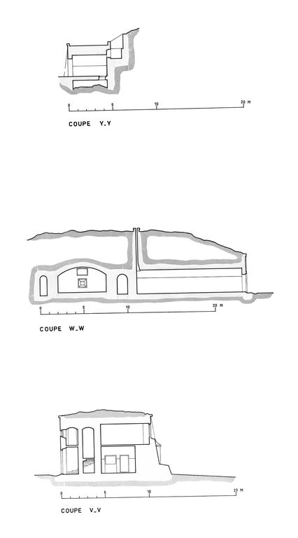 Coupes (Y-Y, V-V et W-W) des casernements (hauts et bas) du fort de LanvéocImmatriculation