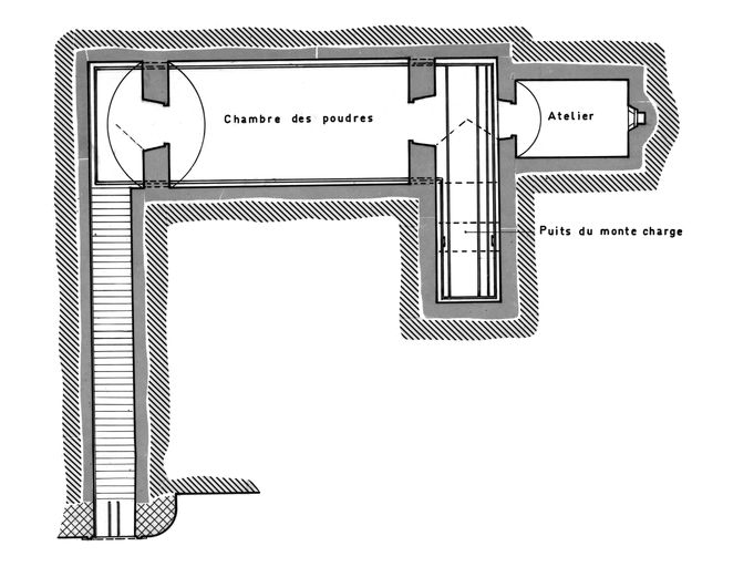 Plan du magasin à poudre sous roc de la batterie de KerviniouImmatriculation
