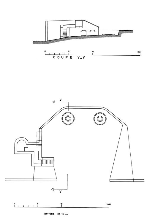 Coupe et plan de la batterie de 19 cm, le Toulinguet, Camaret-sur-MerImmatriculation