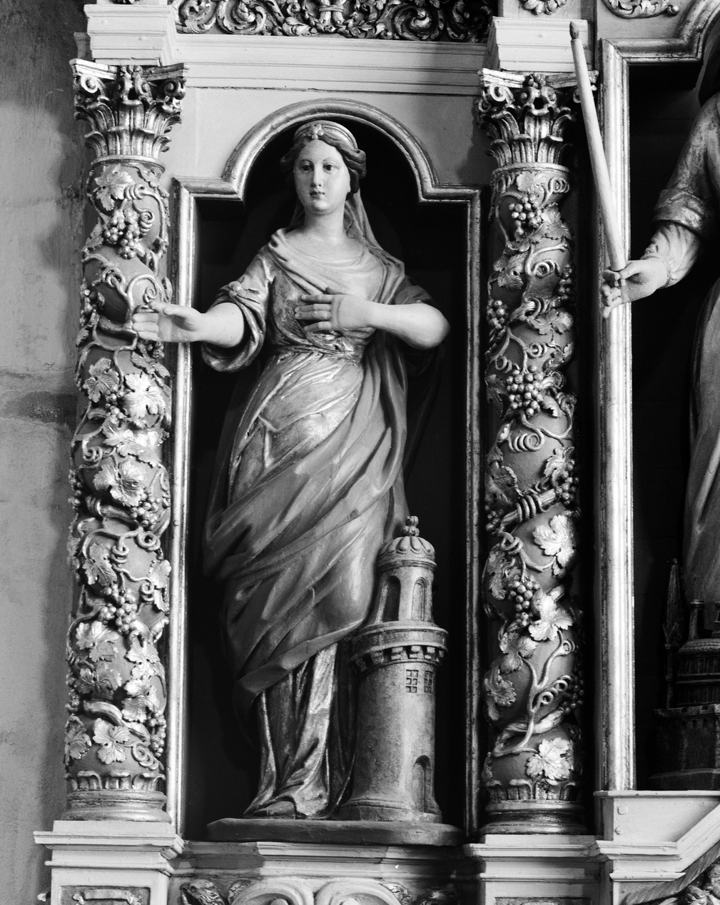 Statue (3, d' applique, petite nature) : sainte Barbe, sainte Geneviève, sainte Catherine d'Alexandrie, église Notre-Dame-de-Croas-Batz (Roscoff),
