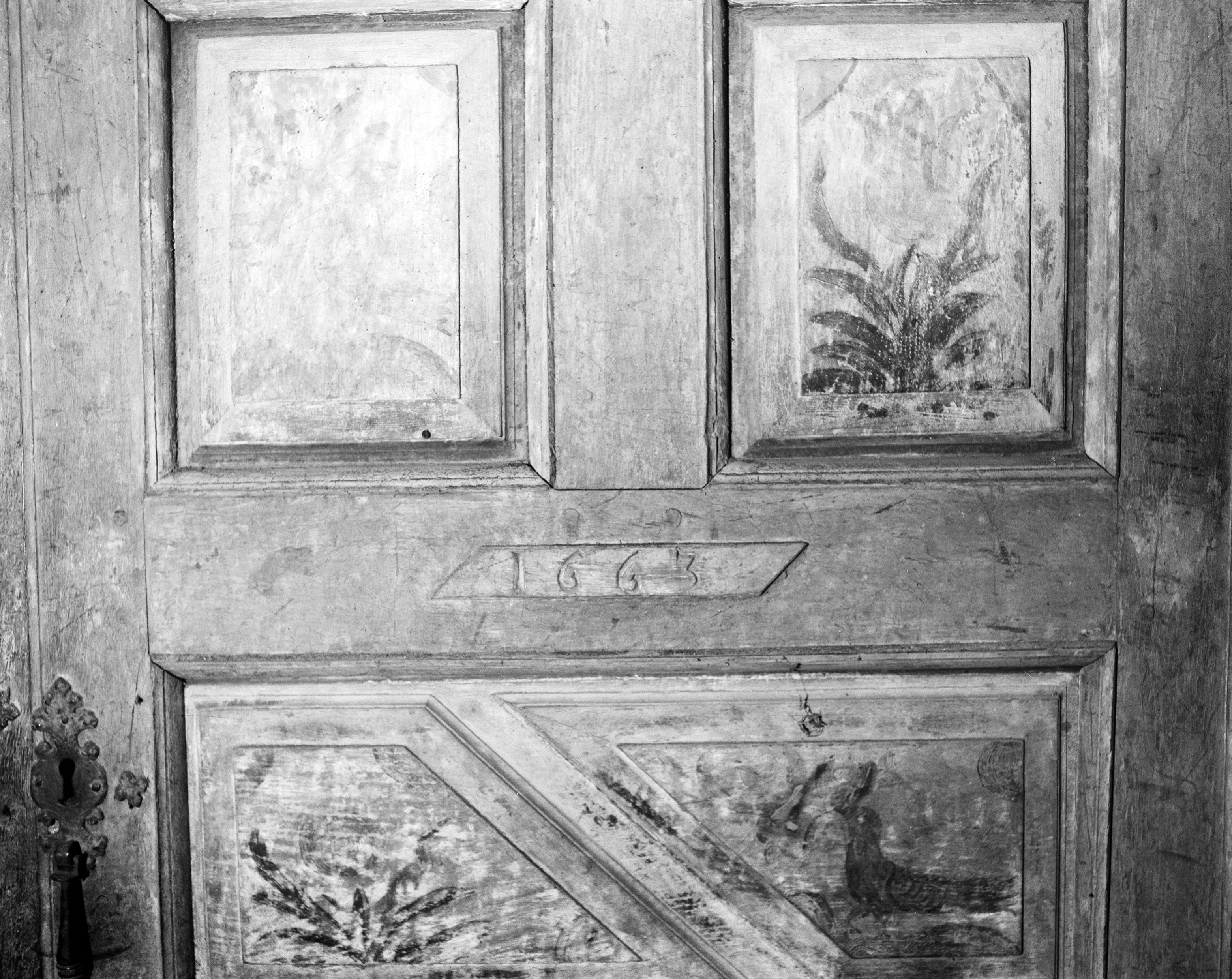 Armoire de sacristie, battant droit, date gravée : 1663 (état en 1987)Immatriculation
