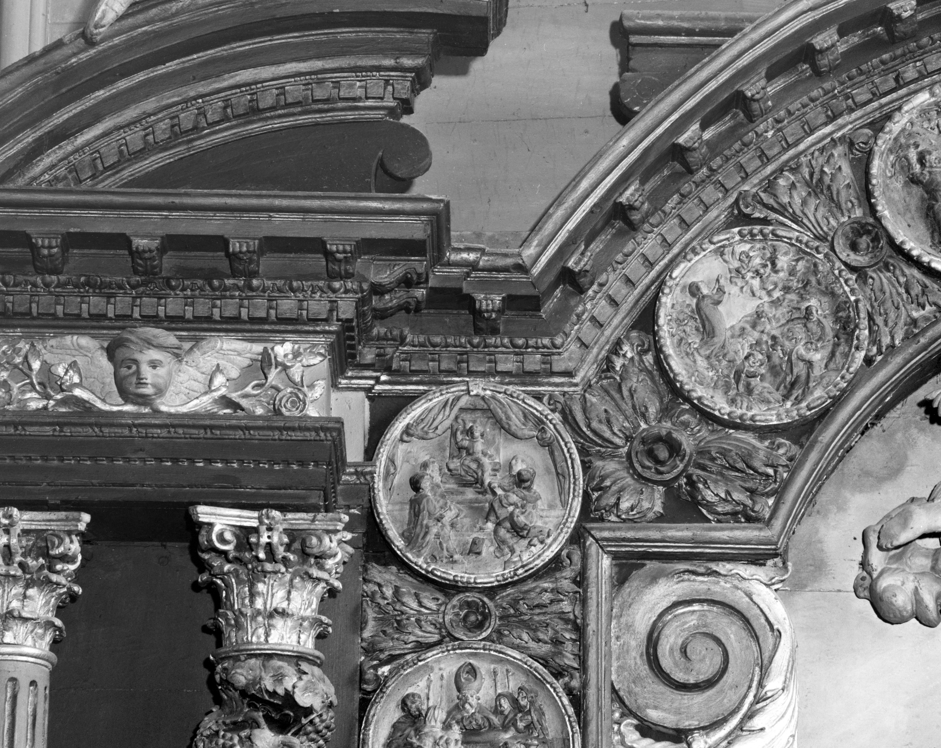 Demi-reliefs, médaillon 5 : Jésus et les docteurs (état en 1987)Immatriculation