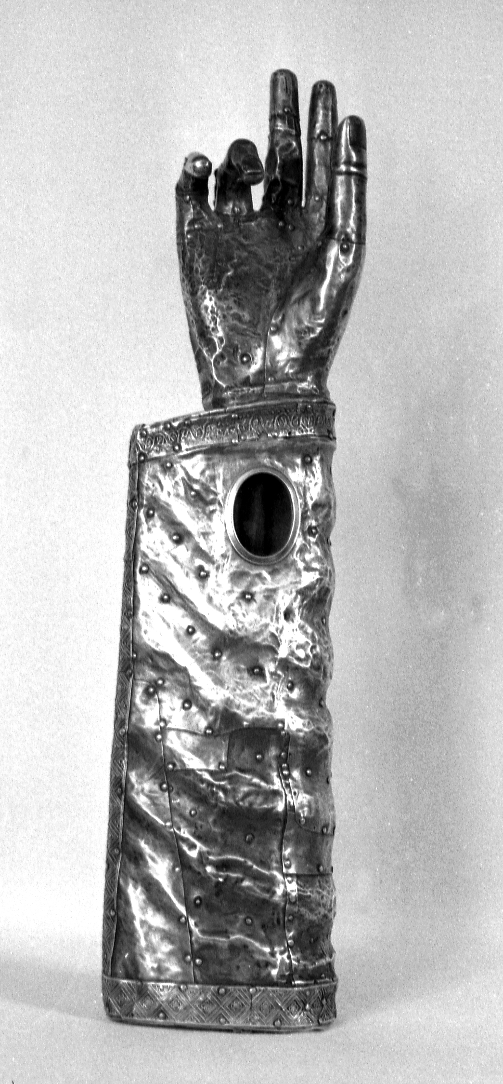 Bras-reliquaire vu du côté de la paume de la main (état en 1987)Immatriculation