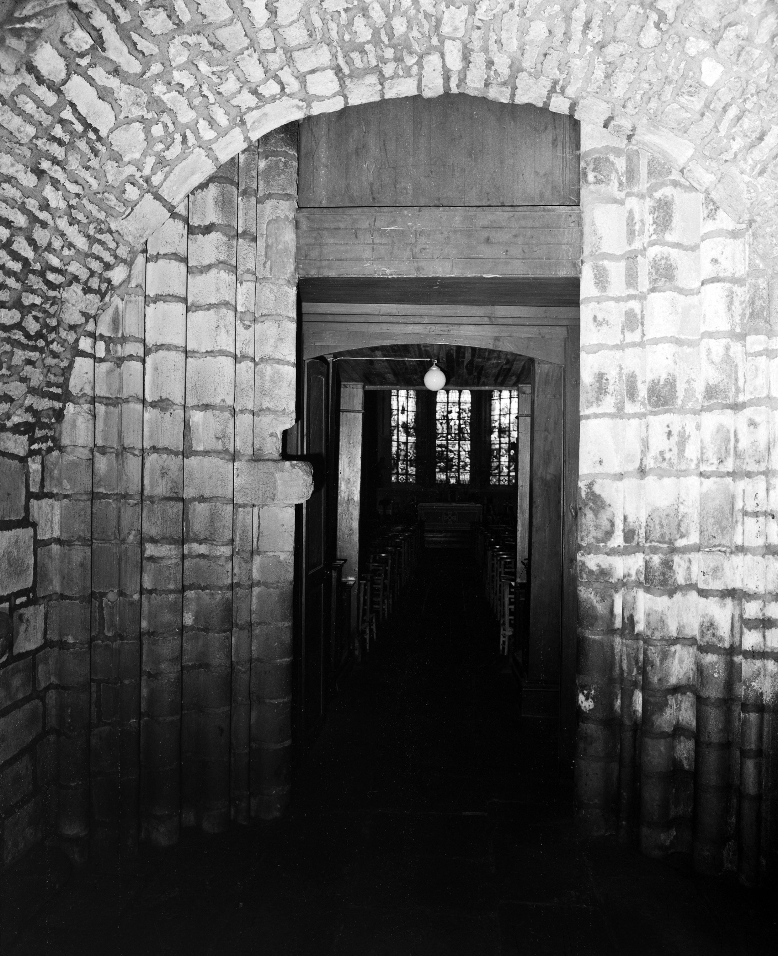 Église, clocher : ancien portail occidental vu à l'intérieur depuis la porte ouest (état en 1987)Immatriculation