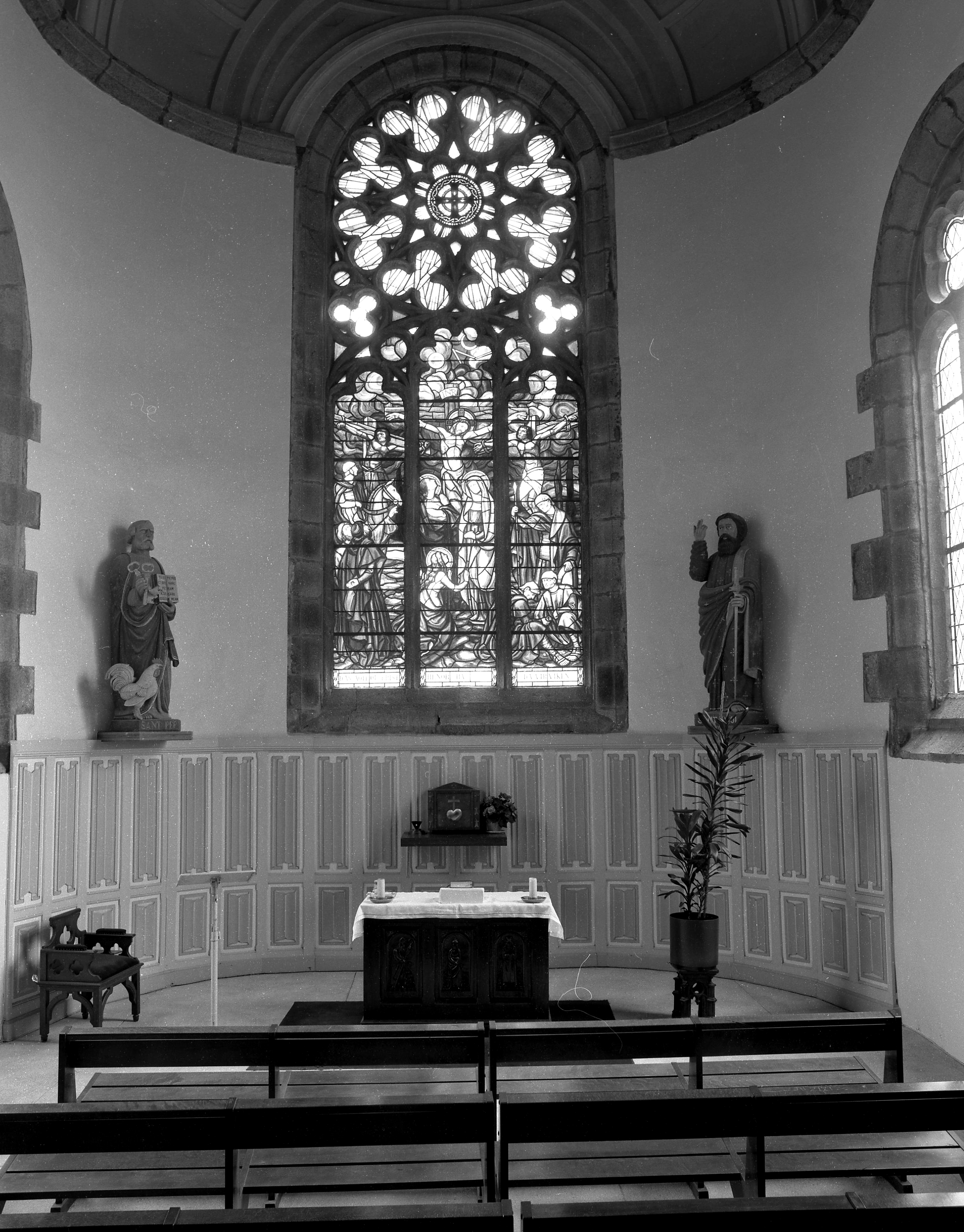 Plounévez-Lochrist, église paroissiale Saint-Pierre : choeur, maîtresse-vitre, vue générale, état en 1987Immatriculation
