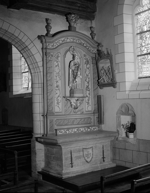 Autels (4), retables (4), gradins d'autel (4) (autel secondaire, retable architecturé), église paroissiale Saint-Martin (Balazé),