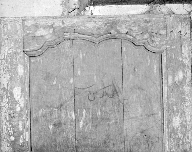 Premier étage, détail du haut d'une porte sur le palier.Immatriculation
