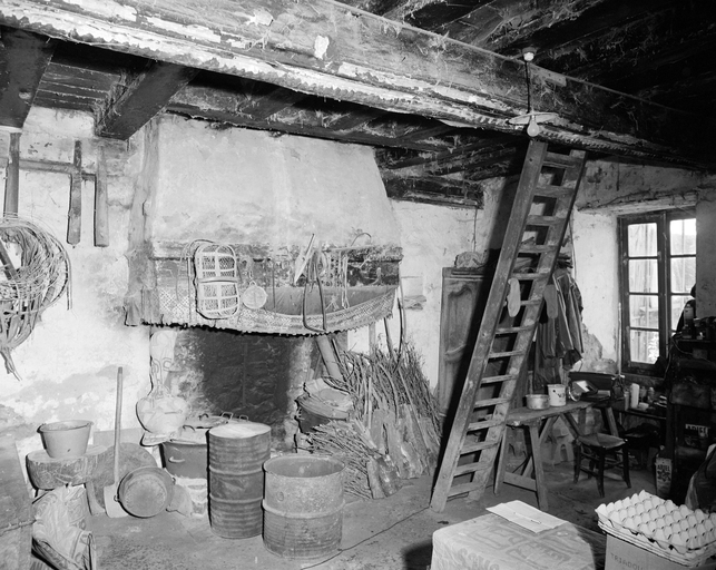 Logis : rez-de-chaussée vue générale de la pièce vers la cheminée.Immatriculation