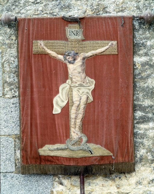 Bannière de procession : Saint Martin, Christ en croix, église paroissiale Saint-Ouen (La Chapelle-Erbrée),