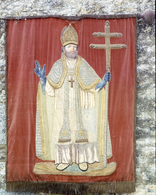 Bannière de procession : Saint Martin, Christ en croix, église paroissiale Saint-Ouen (La Chapelle-Erbrée),