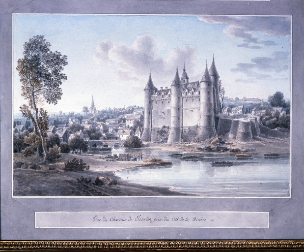 Vue du château de Josselin prise du côté de la rivière. Aquarelle, [s.l. ; s.n. ; 18e siècle].