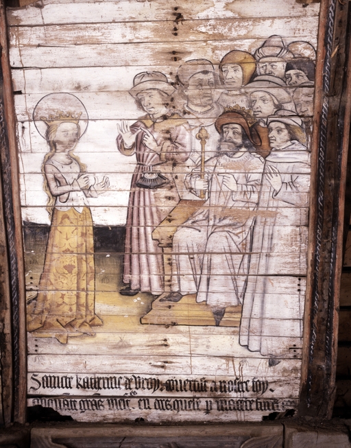 Peintures (8) : vie de sainte Catherine, anges, saint Pierre, saint Jean, chapelle Notre-Dame-de-Carmes (Neulliac),