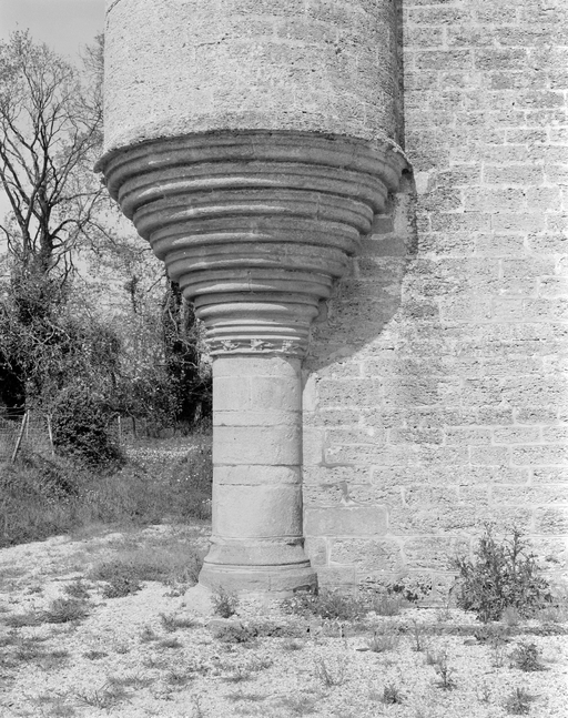 Façade antérieure, tourelle Sud-Ouest ; détail de la baseImmatriculation